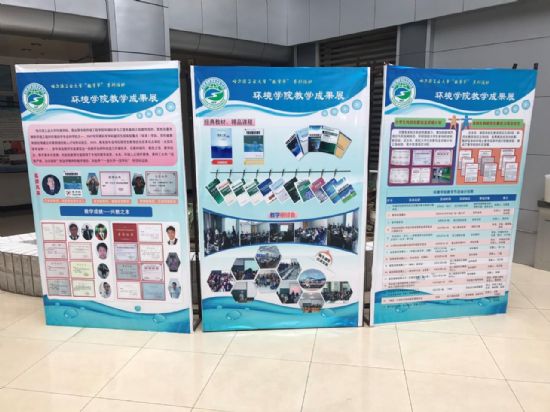 在活动期间,学院一楼大厅展示了我校环境学科自办学以来,在教学方面取得的系列成果,从名师风采、教学成就、经典教材与精品课程及教学研讨会等方面全面展示了我校环境科学与工程学科过去几十年在教学中取得的骄人成绩。