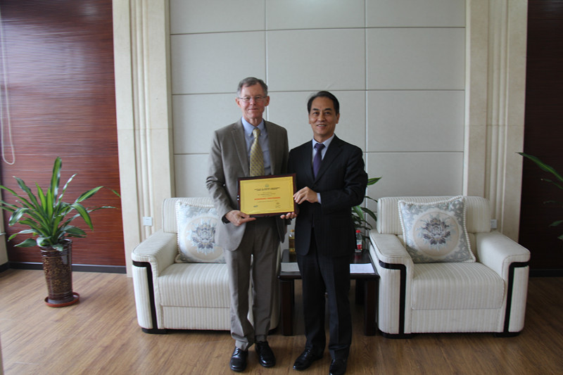 5月13日在城市水资源与环境重点实验室举行了Derek Lovley名誉教授授牌仪式,国际项目部副主任刘洵怡主持了名誉教授授牌仪式。在pc28平台门户网站 常务副院长冯玉杰教授介绍Derek Lovley教授的个人简介和学术成就后,副校长任南琪向Derek Lovley教授颁发了哈工大名誉教授聘牌。Derek Lovley教授表示能够被授予哈工大名誉教授非常荣幸,期待在未来能够与pc28平台门户网站 开展深入合作,特别是在高水平论文发表和人才培养方面希望能为哈工大世界一流环境学科建设贡献力量。授牌仪式结束后,任南琪副校长与Lovley教授就进一步加强两校在环境和生物能源技术领域的合作研究和未来合作方式进行了深入交流。