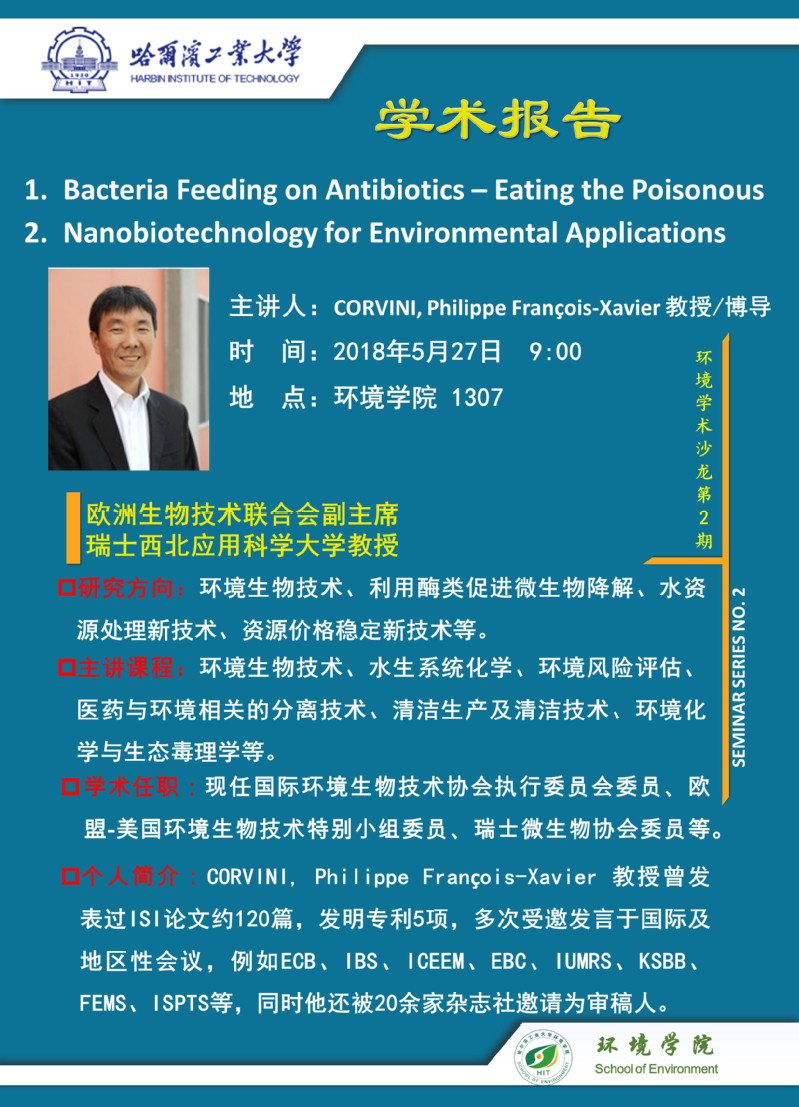 欧洲生物技术联合会副主席,瑞士西北应用科学大学教授CORVINI, Philippe François-Xavier 教授将于2018年5月27日访问pc28平台门户网站 并进行学术交流,欢迎全校感兴趣的师生参加。学术讲座信息如下: