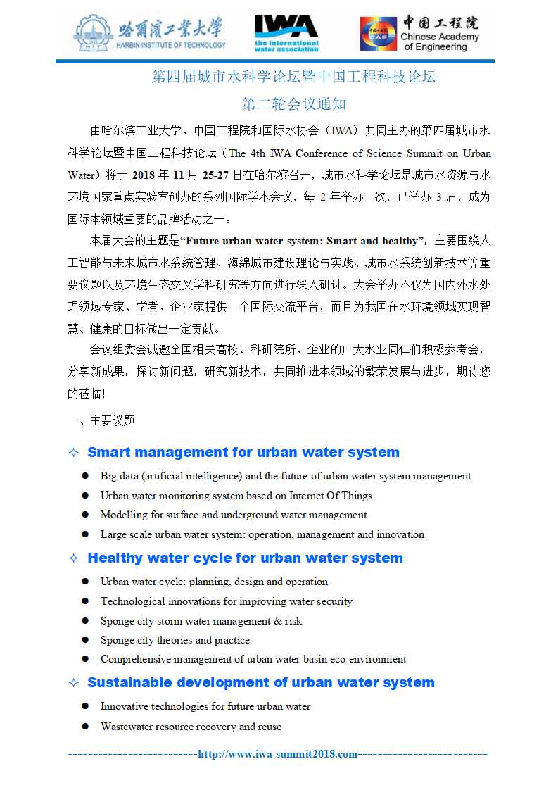 第四届城市水科学论坛暨中国工程科技论坛第二轮会议通知