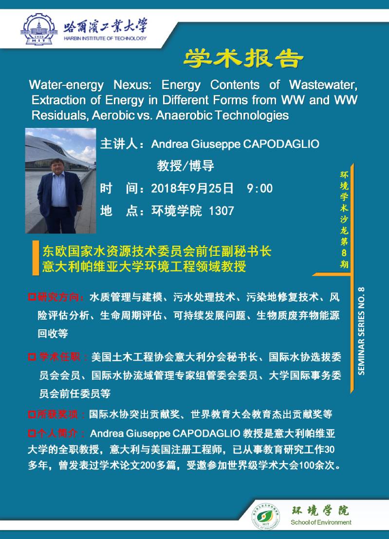 环境学术沙龙第8期——Andrea Giuseppe CAPODAGLIO 教授学术报告