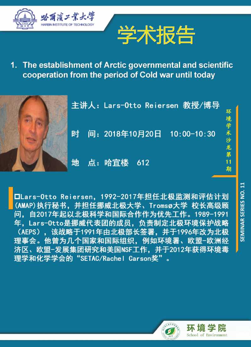 环境学术沙龙第11期—— Lars-Otto Reiersen教授学术报告