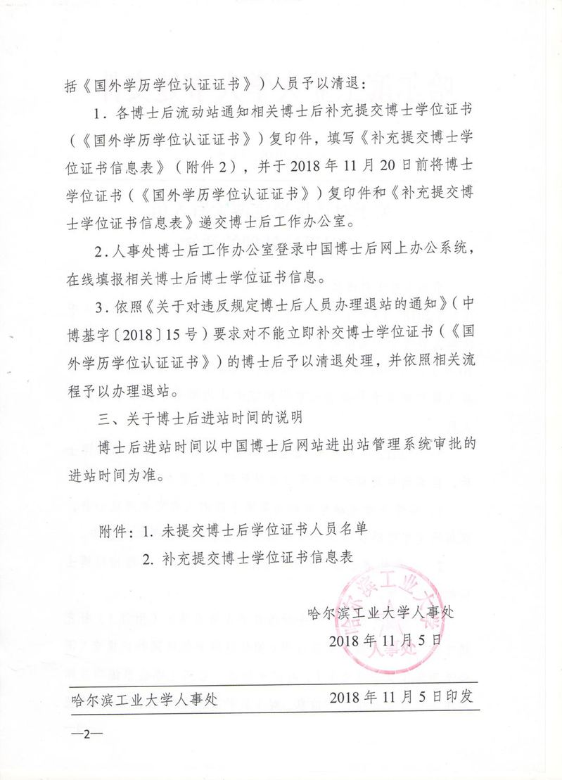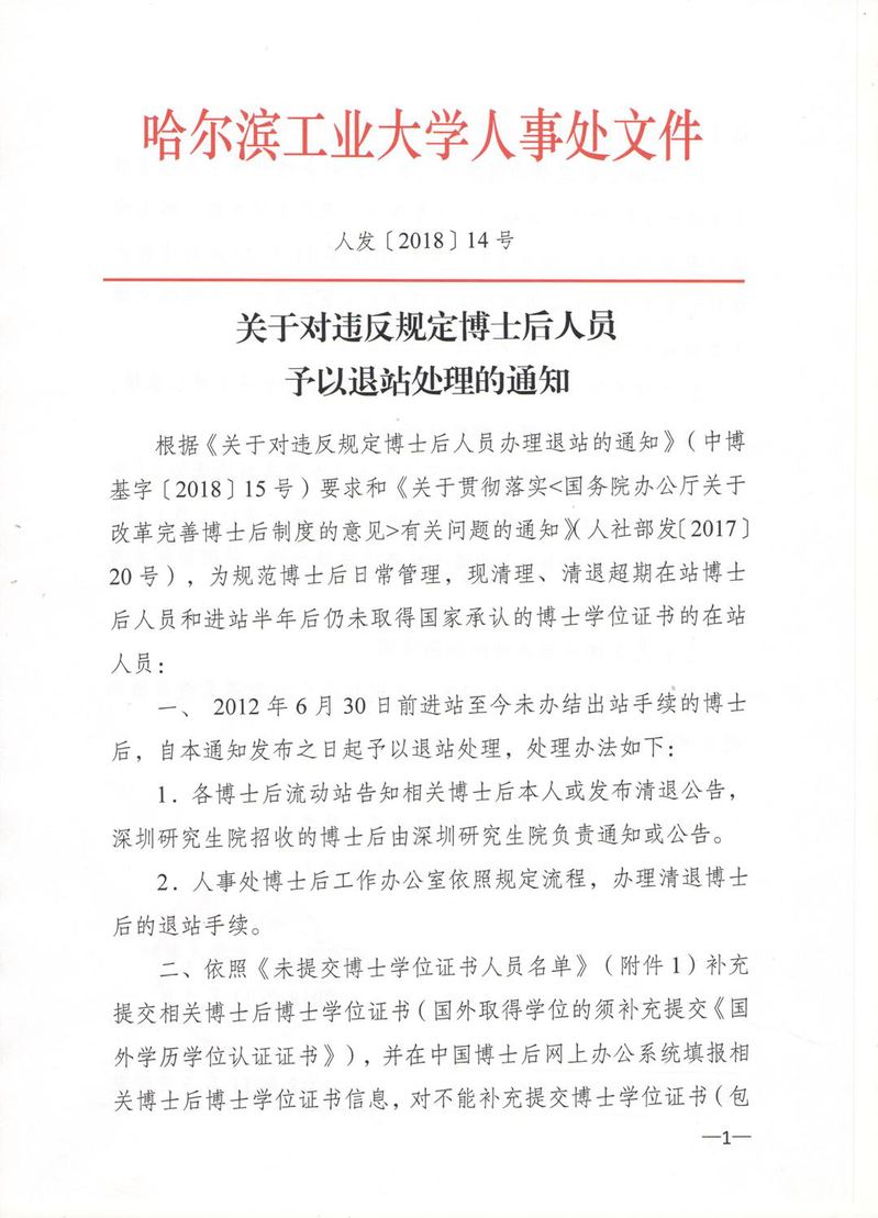 关于对违反规定博士后人员予以退站处理的通知