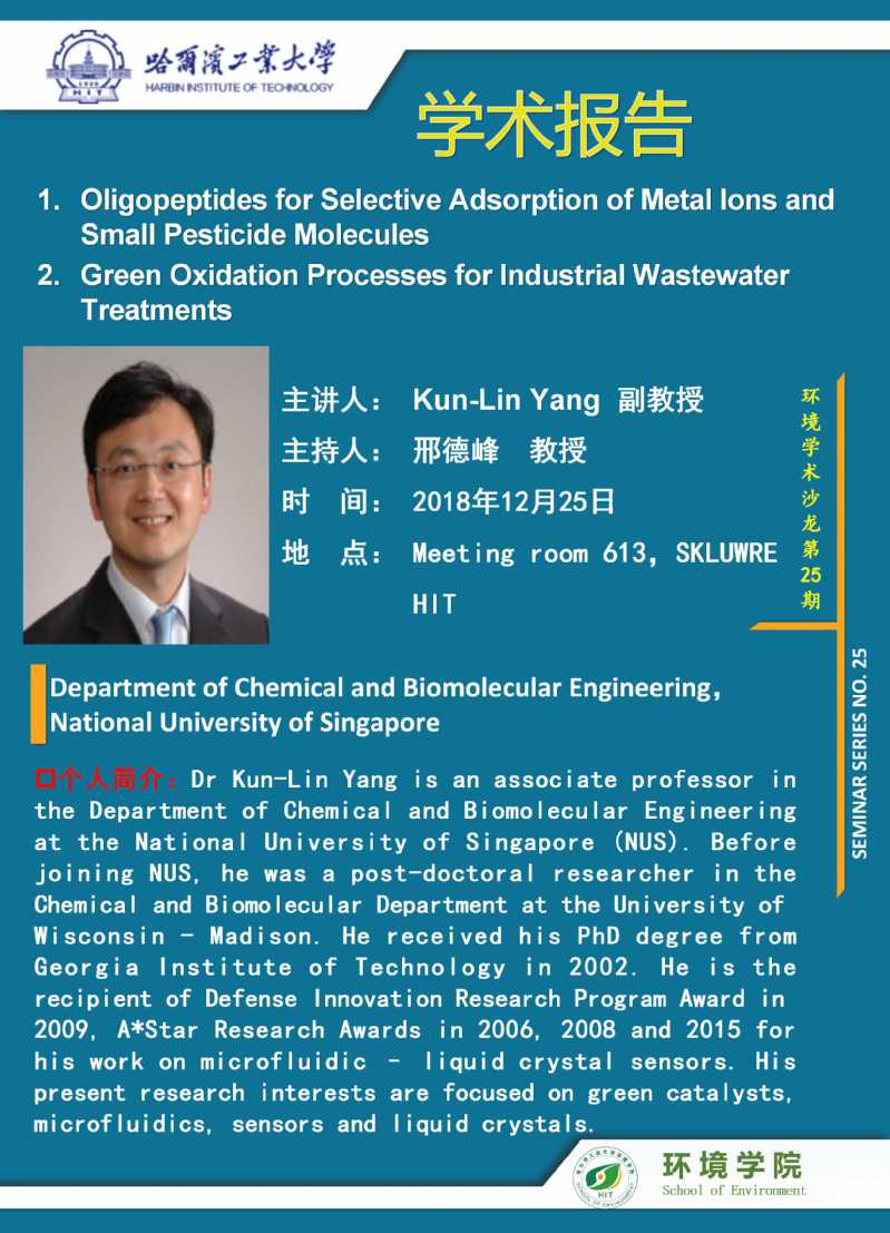 新加坡国立大学 Kun-Lin Yang教授将于2018年12月25日访问pc28平台门户网站 并进行学术交流,欢迎全校感兴趣的师生参加。学术讲座信息如下: