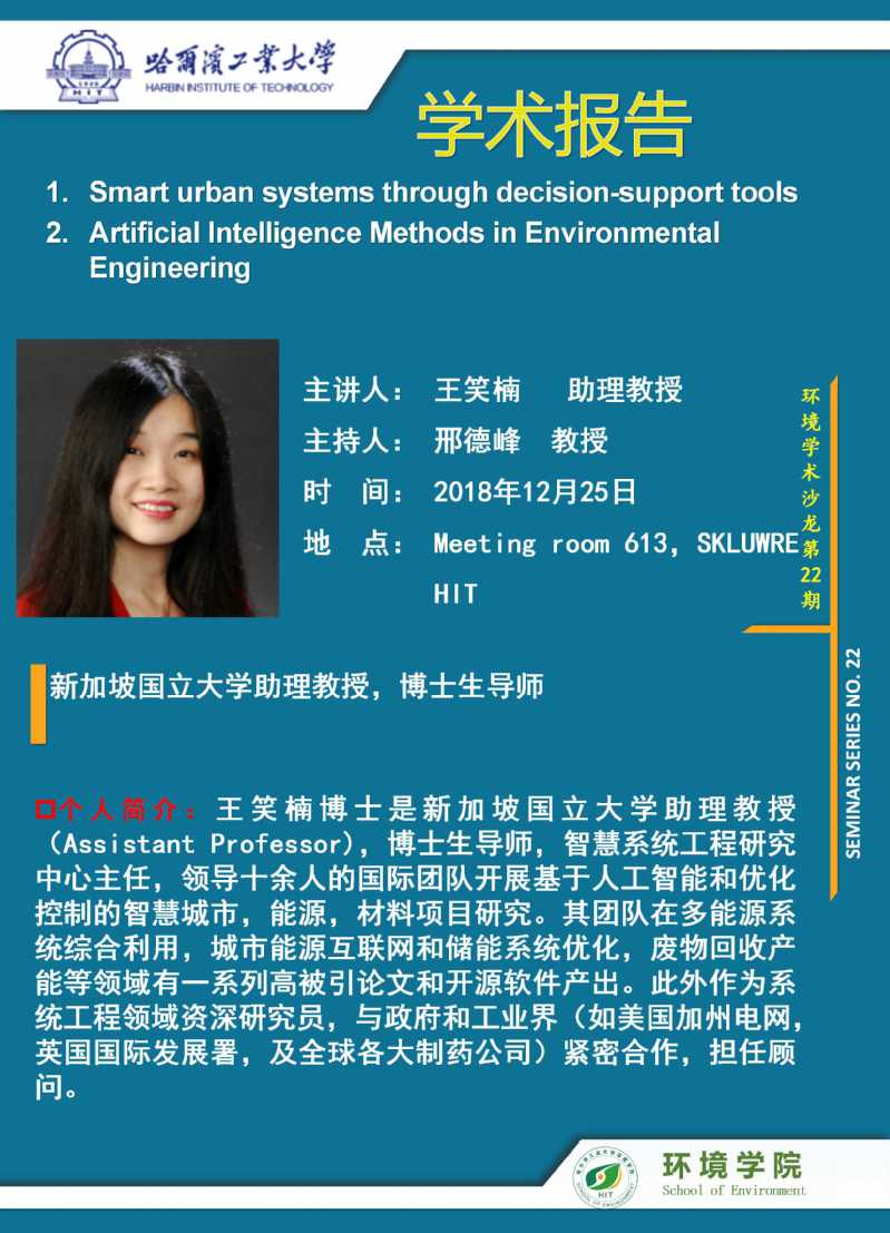 新加坡国立大学王笑楠教授将于2018年12月25日访问pc28平台门户网站 并进行学术交流,欢迎全校感兴趣的师生参加。学术讲座信息如下:
