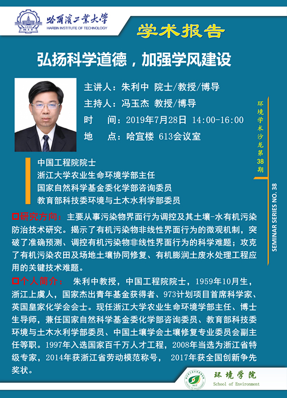 中国工程院院士,现任浙江大学农业生命环境学部主任、博士生导师朱利中教授将于2019年7月28日访问pc28平台门户网站 并进行学术交流,欢迎感兴趣的师生参加。