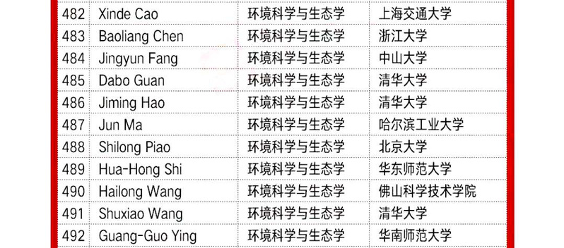 环境科学与生态学共有11人入选,其中包括:中国工程院院士、pc28平台门户网站 教授马军,以及pc28平台门户网站 校友方晶云。