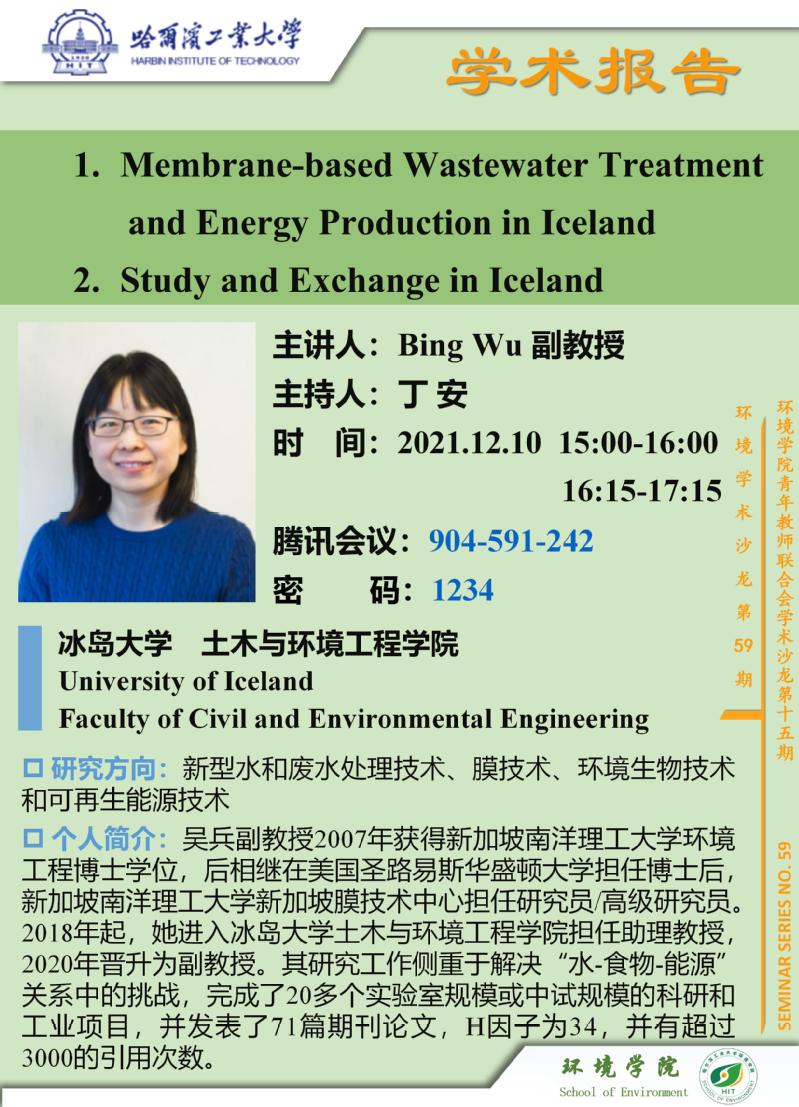 冰岛大学土木与环境工程学院Bing Wu副教授将于2021年12月10日与哈尔滨工业大学师生进行学术交流,欢迎感兴趣的师生参加线上学术报告会。