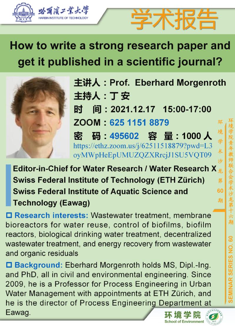 《Water Research》主编Eberhard Morgenroth教授将于2021年12月17日与哈尔滨工业大学师生进行学术交流,欢迎感兴趣的师生参加线上学术报告会。