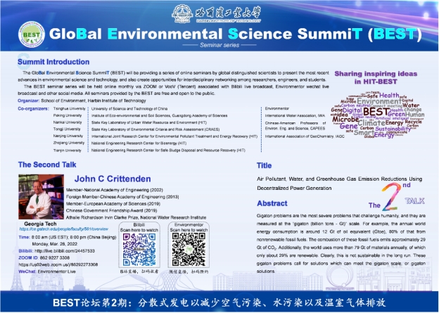 应BEST的邀请,BEST第二讲将由来自佐治亚理工学院的John C. Crittenden教授进行。