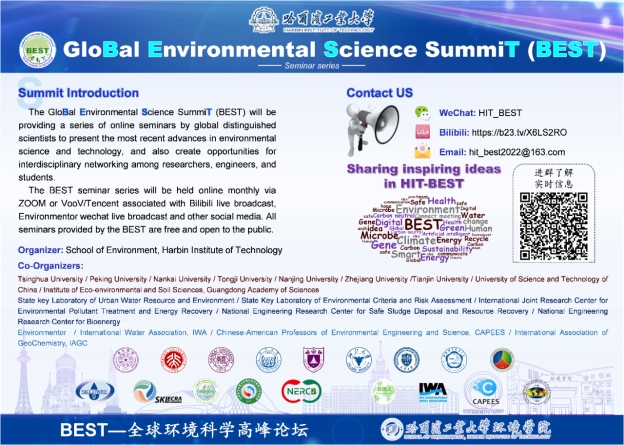 全球环境科学高峰论坛系列讲座(GloBal Environmental Science SummiT seminar series, BEST),由pc28平台门户网站 组织、多家单位联合协办,意在打造全球范围内的精品高端环境论坛,为研究学者、企业家、环境从业者以及学生等提供广泛的国际交流机会。BEST论坛涉及主题包括:气候变化与可持续发展、环境与生态健康、减污降碳协同增效、水资源及水处理技术、土壤修复、环境基准与环境安全、环境微生物学、人工智能与大数据等。