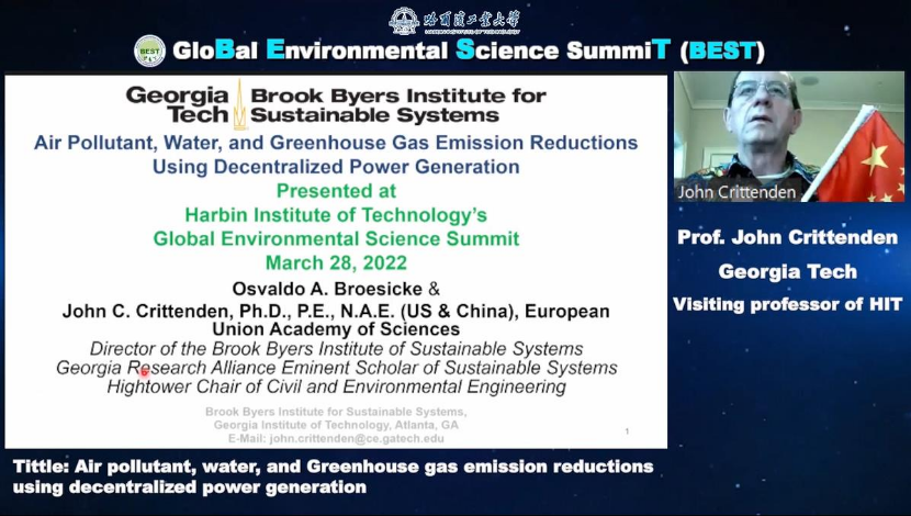 2022年3月28日晚,全球环境科学高峰论坛(GloBal Environment Science SummiT,BEST)系列讲座第二期讲座报告在ZOOM,环境人Environmentor公众号,Bilibili等网络平台如期举行,来自环境领域的专家、学者、研究生及工程技术人员等近万人参与本次讲座。本期报告嘉宾为来自佐治亚理工学院的John C. Crittenden教授,John C. Crittenden教授以“分散式发电以减少空气污染、水污染以及温室气体排放”为主题阐述了分散式发电技术应用前景及其对全球气候影响的内在逻辑关系。以“千兆吨级能源消耗模式”为切入点,John C. Crittenden教授从城市能源系统、分散式能源发电、热电联产与可再生能源和电池相结合、集中式与分散式天然气能源系统、实际案例应用研究以及空气污染的社会成本等六个方面逐个展开讲述。John C. Crittenden教授强调了在当前千兆吨级的能源消耗模式下,分散式发电系统及其与各类基础建设设施之间建立可持续联系网络的意义与必要性,并指出全球气候是能源改造环境成本效益的主要控制因素。报告从城市生态系统能源的来源到能源的消耗及其带来的次生影响(如温室气体排放,PM2.5,酸雨等)出发,反思了当前这种只关注于某单一能源成本的次优系统中存在的问题,并提出了新的网络式能源消耗模式,即在各类能源与城市基建设施之间建立一个多助、有弹性的系统。这样的系统将有助于提高能源利用效率并减少对水的需求和空气污染物的排放,能够满足可持续发展的目标并持续推动社会向前发展,对人类社会改造城市能源系统和研发相关技术有着重要的借鉴意义。