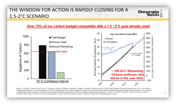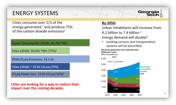 John C. Crittenden教授首先介绍了城市能源现状、碳预算以及电能、水能以及水处理行业所需能耗等关键问题。Crittenden教授指出城市系统消耗了2/3的能源,并且产生了全球75%的碳排;到2050年城市人口将从42亿增加至74亿,对于能源的需求也将翻倍,并指出了人类应对气候变化、缓解全球变暖的迫切性。