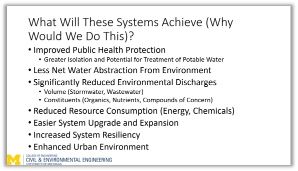 Glen教授随后提出未来水资源回收回用所需满足的几条标准:再生水满足受纳水体水质标准;并实现针对特定目标的回用标准;回收多种物质,包括能量、营养物质、有机质等;能够被适应性地集成到整体系统中。