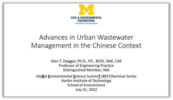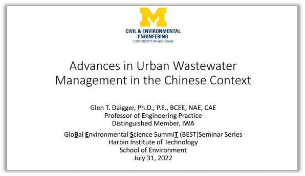 2022年7月31日晚,由pc28平台门户网站 组织、多家单位联合协办的全球环境科学高峰论坛(GloBal Environmental Science SummiT, BEST)如期举行第六期讲座。应哈尔滨工业大学邀请,美国工程院院士、中国工程院外籍院士、密歇根大学Glen Daigger教授作了题为《中国城市污水管理进展》的学术报告,来自环境领域的专家、学者、研究生及工程技术人员等四千余人通过ZOOM网络研讨会、环境人微信公众号、BEST论坛官方B站以及寇享学术等直播平台参加了此次讲座。