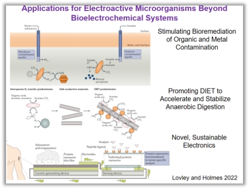 最后,Derek Lovley教授总结到,电活性微生物分布十分广泛并且具有多样性, 仍有很多电活性微生物的胞外电子传递机制等待进一步地探索。电活性微生物在生物电化学系统、生物修复、厌氧发酵效能提升、以及新型电子元件的发明中都发挥了十分重要的作用。