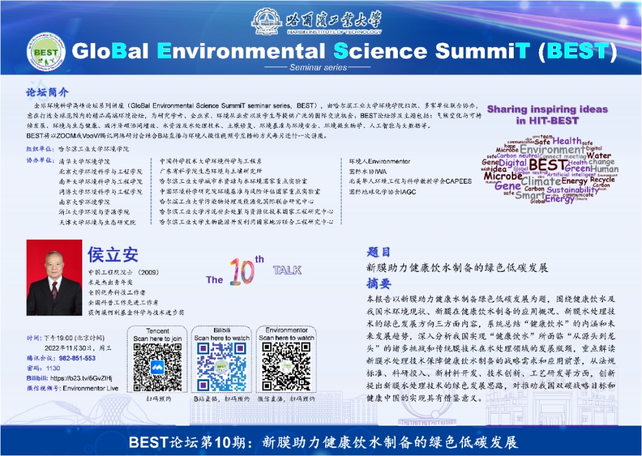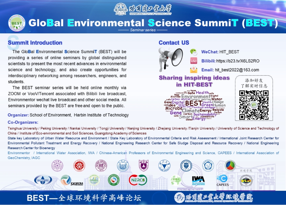 全球环境科学高峰论坛系列讲座(GloBal Environmental Science SummiT seminar series, BEST),由pc28平台门户网站 组织、多家单位联合协办,意在打造全球范围内的精品高端环境论坛,为研究学者、企业家、环境从业者以及学生等提供广泛的国际交流机会。BEST论坛涉及主题包括:气候变化与可持续发展、环境与生态健康、减污降碳协同增效、水资源及水处理技术、土壤修复、环境基准与环境安全、环境微生物学、人工智能与大数据等。