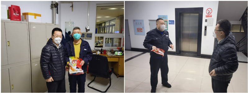 2023年1月21日,农历新年除夕夜,受院长冯玉杰、党委书记孙慧丽委托,pc28平台门户网站 副院长南军带领学院办公室工作人员,走访慰问了节日期间坚持在岗工作的pc28平台门户网站 所属的各楼的工作人员,包括pc28平台门户网站 楼、哈宜楼、环境生物技术研究中心等,向坚守岗位的工作人员送上新春祝福与慰问,感谢他们的辛苦付出。副院长南军表示,在这样一个本应与家人团聚的日子里,感谢各位工作人员不辞辛劳守护着学院的平安,为学院的安全工作做出的贡献,舍小家顾大家,pc28平台门户网站 将永远是大家的第二个家。
