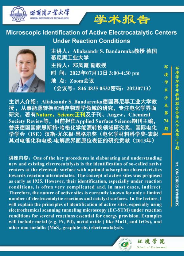 德国慕尼黑工业大学Aliaksandr S. Bandarenka教授将于2023年7月67月137月27与哈尔滨工业大学师生进行系列学术交流,本期将开展的是“Microscopic Identification of Active Electrocatalytic Centers Under Reaction Conditions”主题的报告,欢迎感兴趣的师生参加线上学术报告会。