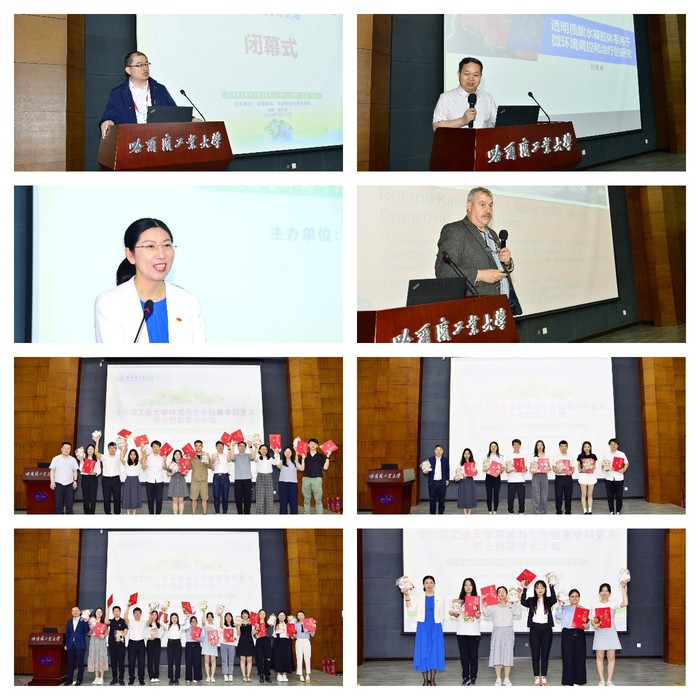 论坛闭幕式由生命科学与技术学院副院长聂桓主持。首先,各分论坛评选出的6名优秀口头报告代表分别进行5分钟成果展示。随后,田维明教授、邱微教授、挪威极地研究科学院院士Roland Kallenborn分别以“透明质酸水凝胶体系用于微环境调控和治疗的研究”、“建设人与自然和谐共生的现代化”、“Local sources of contaminants in Arctic Environment”为题做论坛主旨报告。在颁奖环节中,优秀口头报告、亮点海报、优秀海报、优秀摄影作品获奖者依次登台领奖,并合影留念。最后,pc28平台门户网站 副院长刘冰峰总结发言。