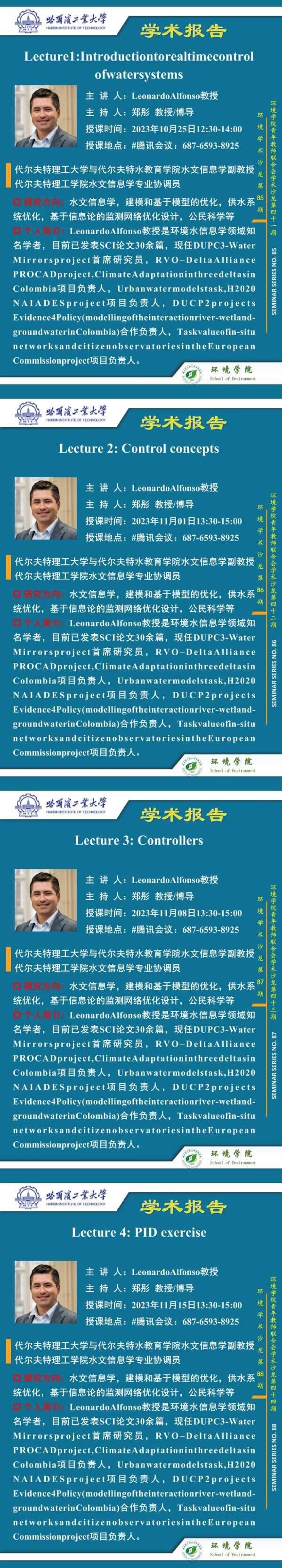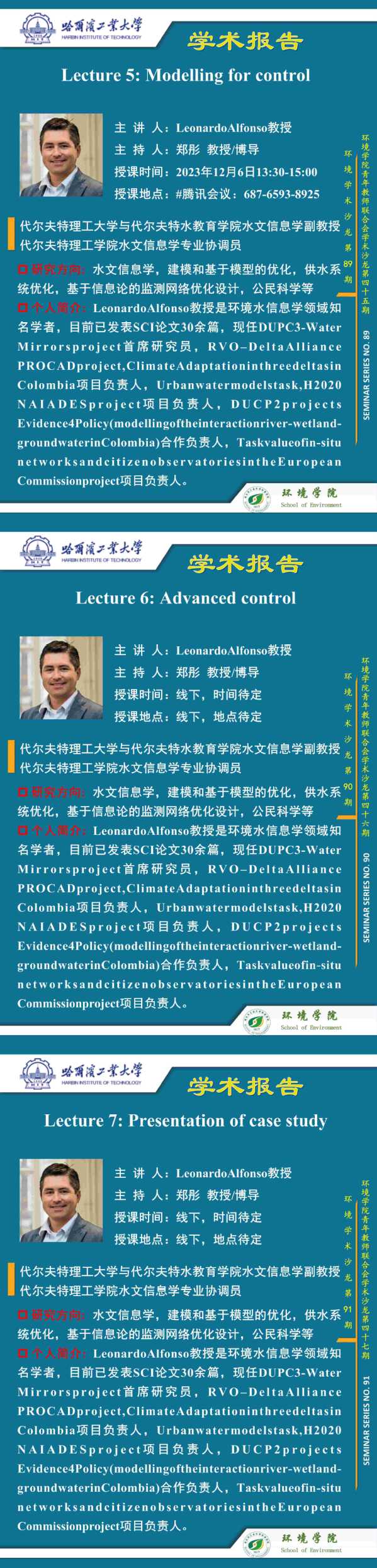代尔夫特理工大学与代尔夫特水教育学院水文信息学副教授,代尔夫特理工学院水文信息学专业协调员Leonardo Alfonso 教授,将于2023年10月25日-12月6日与哈尔滨工业大学师生进行学术交流,欢迎感兴趣的师生参加学术报告会。