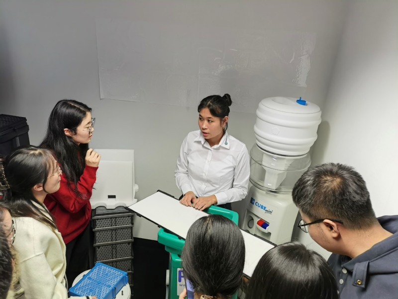 爱碧尼克员工向出访团介绍便携式膜处理装置