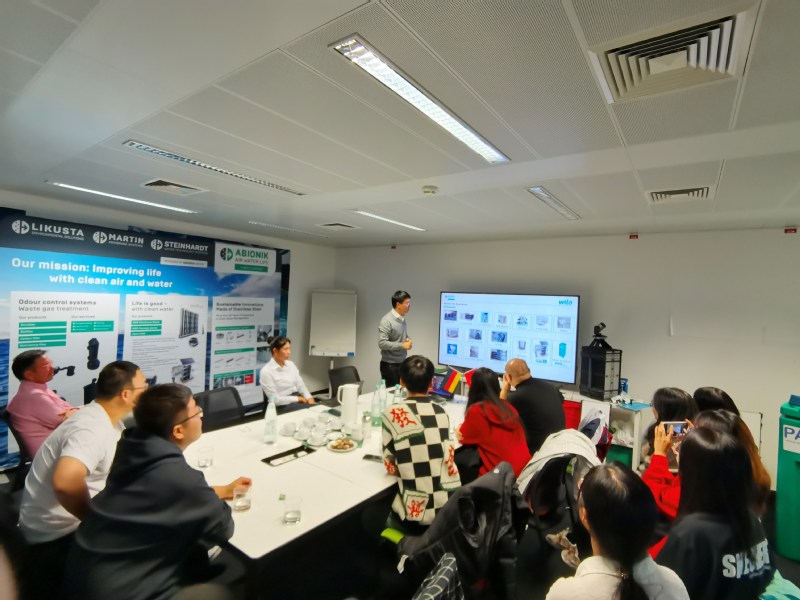出访团第二站来到了德国柏林的爱碧尼克公司。爱碧尼克目前在欧洲和亚洲有11个生产和销售点,员工170名。集团旗下包含MARTIN Systems,LIKUSTA Umwelttechnik和Steinhardt等子公司,是全球领先的空气、水、废水、废土处理解决方案供应商,专注于工业、市政和海事部门的具体需求和要求。交流期间,周旷昕研究员向访问团全面介绍了爱碧尼克公司的战略方针,并指出爱碧尼克公司在德国航海市政和海事部门的重要作用。参观研发中心时,出访团展示了针对缺水污水地区开发的便携式膜处理废水装置,可实现病菌的99%以上的有效去除。