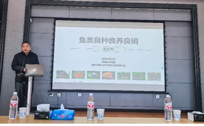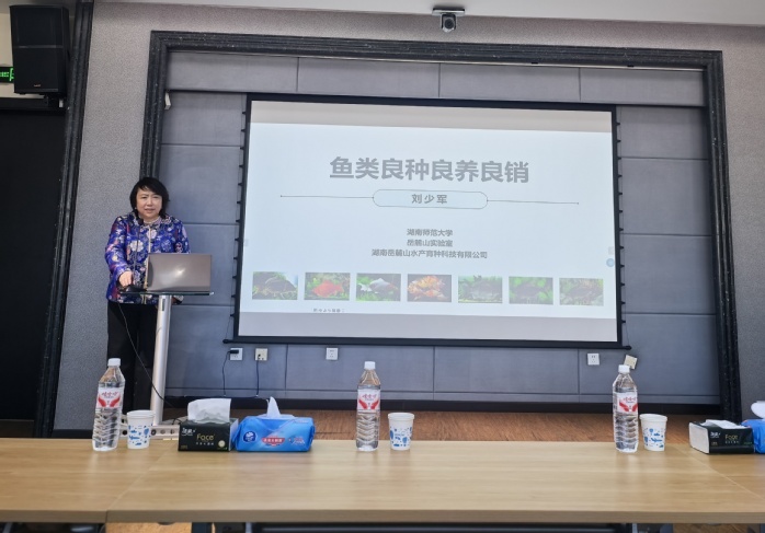 刘少军教授系统阐述了团队在鱼类产业全链条升级领域的系统性创新与实践,重点强调了生态养殖模式推广及养殖尾水生态净化的紧迫性与科学合理性,为我国渔业高质量转型提供指引。报告中介绍了我国在世界养殖水产业的市场占比及我国各省市养殖规模与模式,目前池塘养殖及设施化养殖仍面临着环境制约明显、尾水排放不规范等问题,粗放式养殖不仅影响水产品质量,更对水域生态造成潜在压力。通过生态净化技术可实现尾水资源化利用,构建“养殖-净化-循环”的闭环模式,既降低环保压力,又能提升养殖综合效益。报告还介绍了典型的“生态养殖+智慧调控”案例,最终形成“良种育成-生态养殖-优质优价”的良性循环,这正是良种、良养、良销协同发力的生动例证。此次报告深刻诠释了科技赋能渔业绿色发展的核心价值,并为我校承担的国家重点研发计划《经济适用型集约化养殖尾水高效处理及资源化利用技术与装备研发及应用》项目执行指明方向,促进生态保护与渔业产业长效发展。